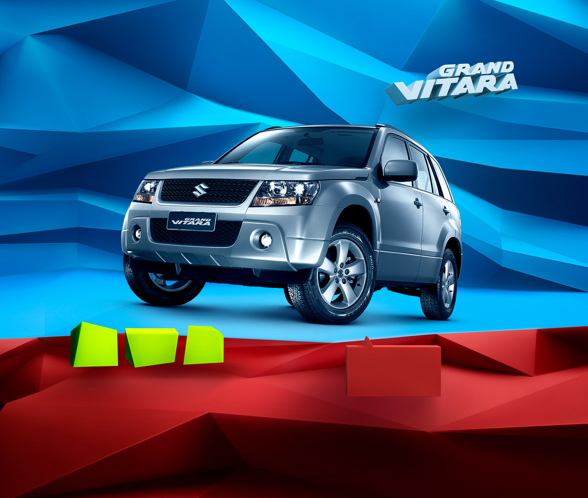 New Suzuki Grand Vitara Campaign: The car was photographed in a studio, with a 3D-modeled abstract background.